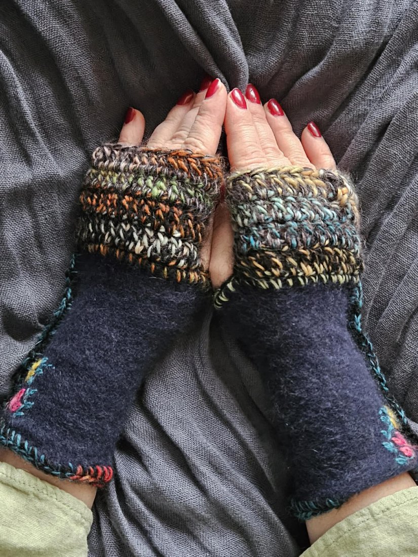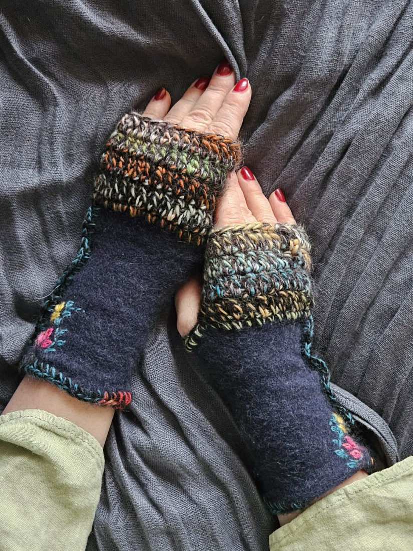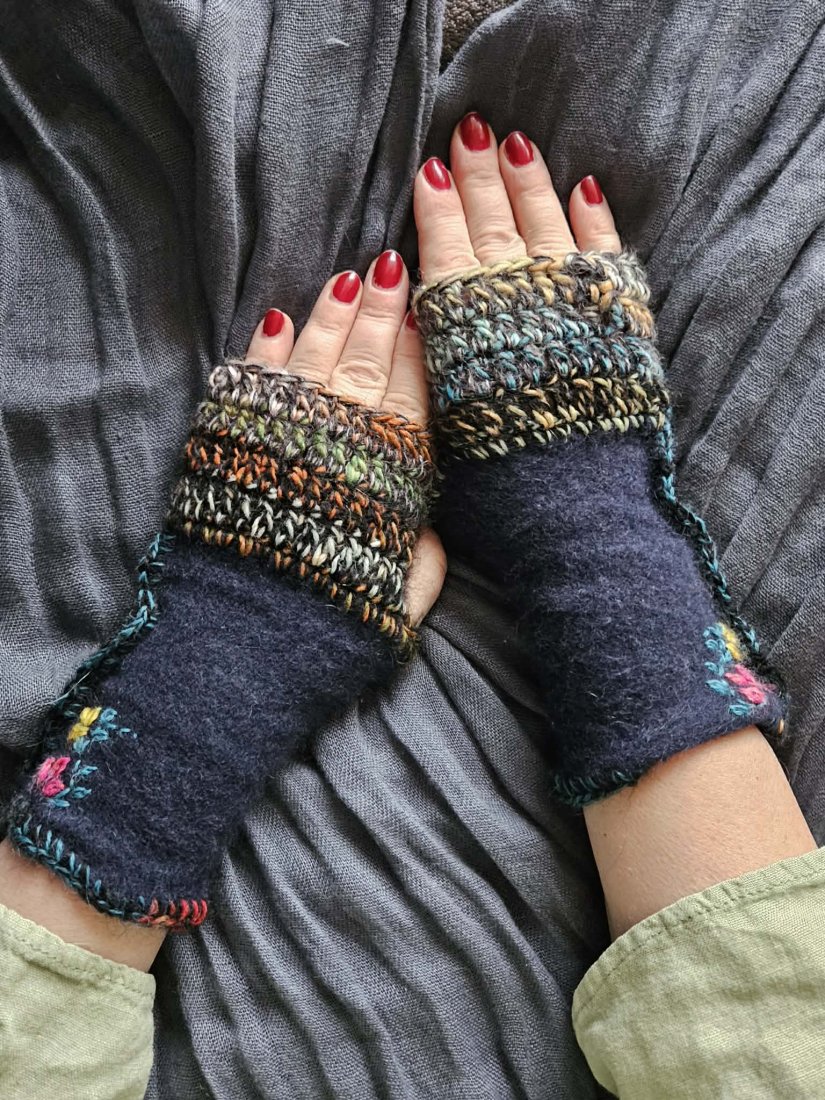 Mitenki, ocieplacze na dłonie, modny i wygodny dodatek do stylizacji, ręcznie szyte i dziergane nie tylko na jesień czy zimę, to również przedłużenie rękawów w chłodne letnie wieczory i ranki. Rozmiar S-M