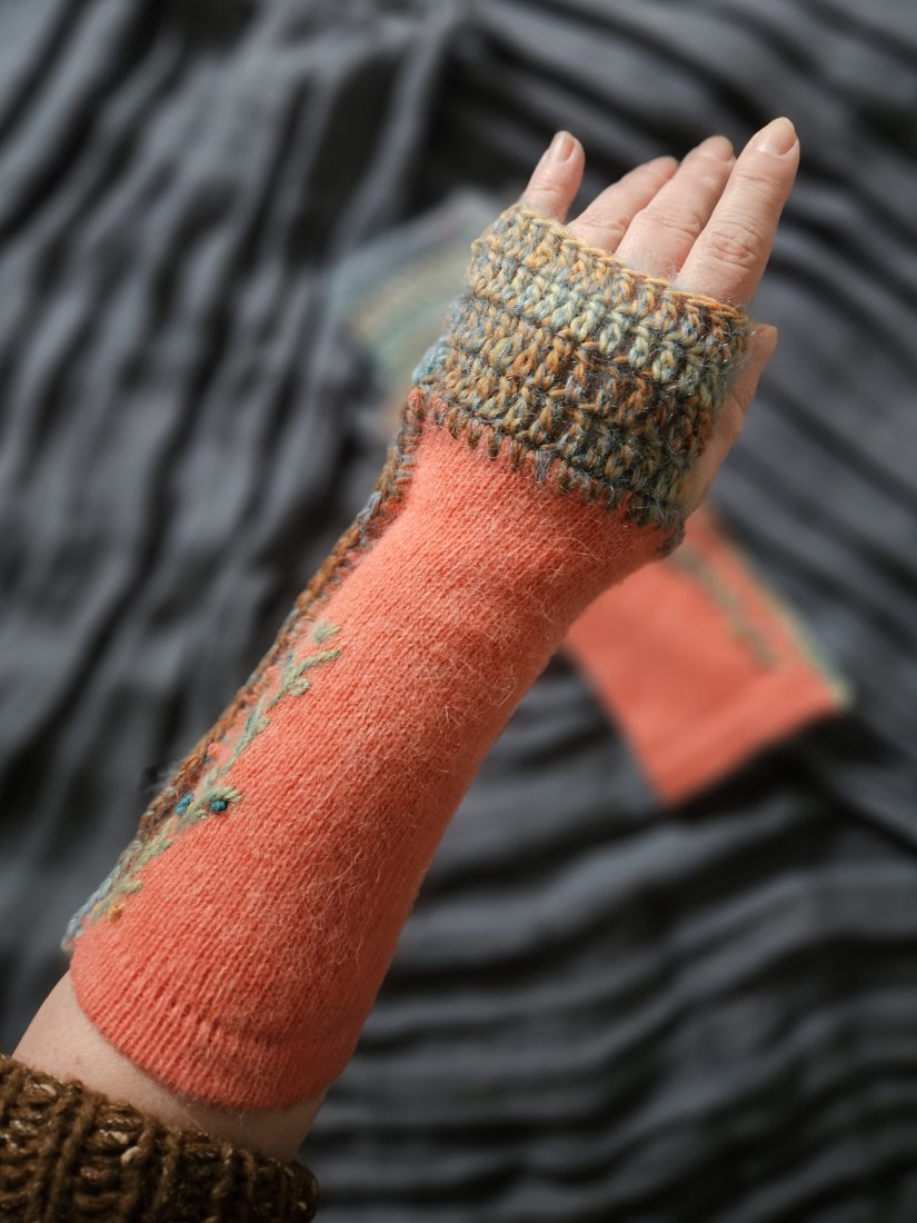 Mitenki, ocieplacze na dłonie, modny i wygodny dodatek do stylizacji, ręcznie szyte i dziergane nie tylko na jesień czy zimę, to również przedłużenie rękawów w chłodne letnie wieczory i ranki. Rozmiar S-M