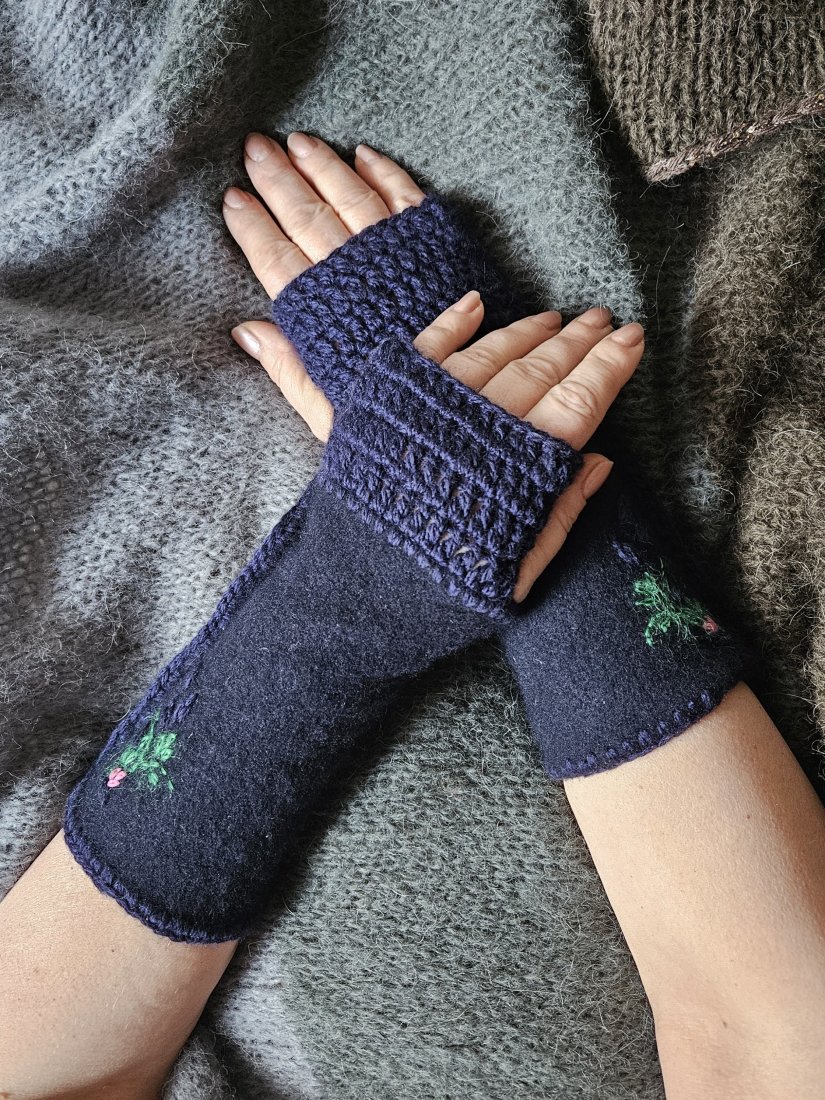 Mitenki, ocieplacze na dłonie, modny i wygodny dodatek do stylizacji, ręcznie szyte i dziergane nie tylko na jesień czy zimę, to również przedłużenie rękawów w chłodne letnie wieczory i ranki. Rozmiar S-M