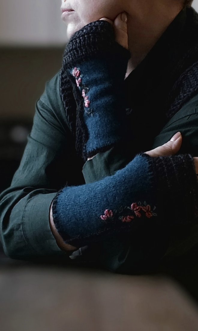 Mitenki, ocieplacze na dłonie, modny i wygodny dodatek do stylizacji, ręcznie szyte i dziergane nie tylko na jesień czy zimę, to również przedłużenie rękawów w chłodne letnie wieczory i ranki. Rozmiar M-L