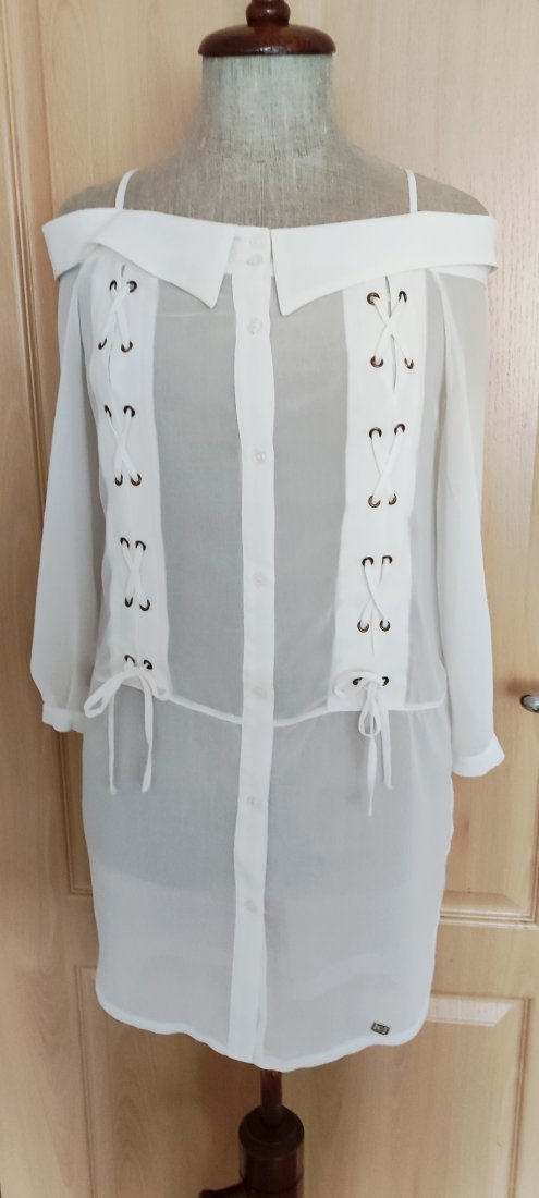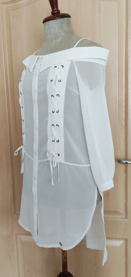 Obwód w biuście - 112cm/prosta do dołu/ długość bluzki z tyłu - 88cm/ długość z przodu - 76cm.