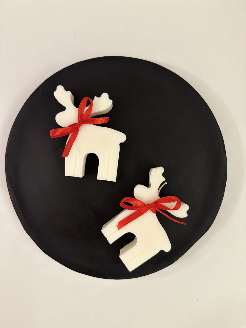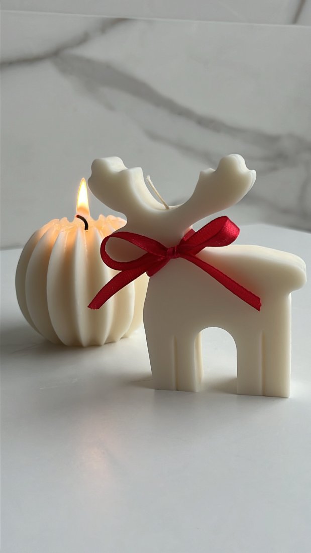 Świeczka wykonana z naturalnego wosku sojowego w kształcie renifera. Idealny pomysł na upominek świąteczny dla bliskiej osoby, pracowników, czy klientów. Wysokość 9 cm, szerokość 8 cm , grubość 2 cm .