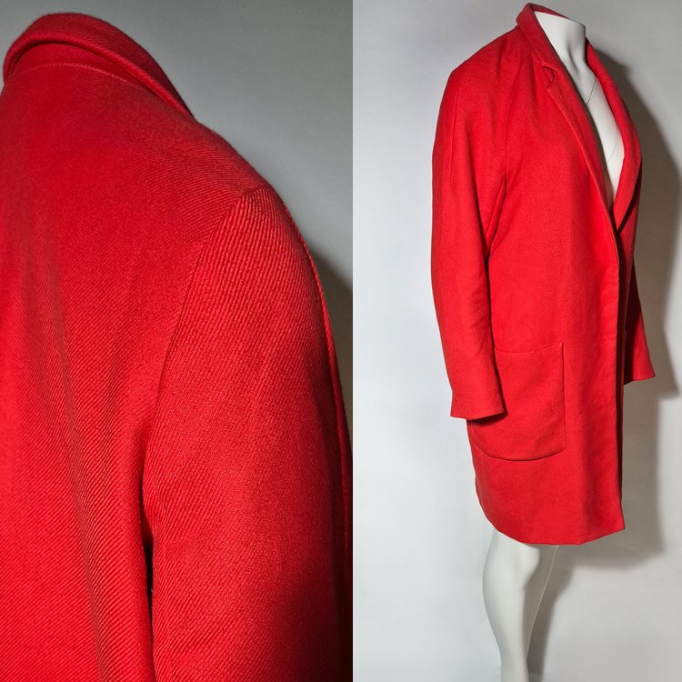 płaszcz damski, płaszcz reserved, czerwony płaszcz, elegancki płaszcz, klasyczny płaszcz, płaszcz 38, płaszcz do kolan, płaszcz jesienny, płaszcz zimowy, płaszcz z podszewką, damski płaszcz czerwony, minimalistyczny płaszcz, płaszcz z kieszeniami, moda damska