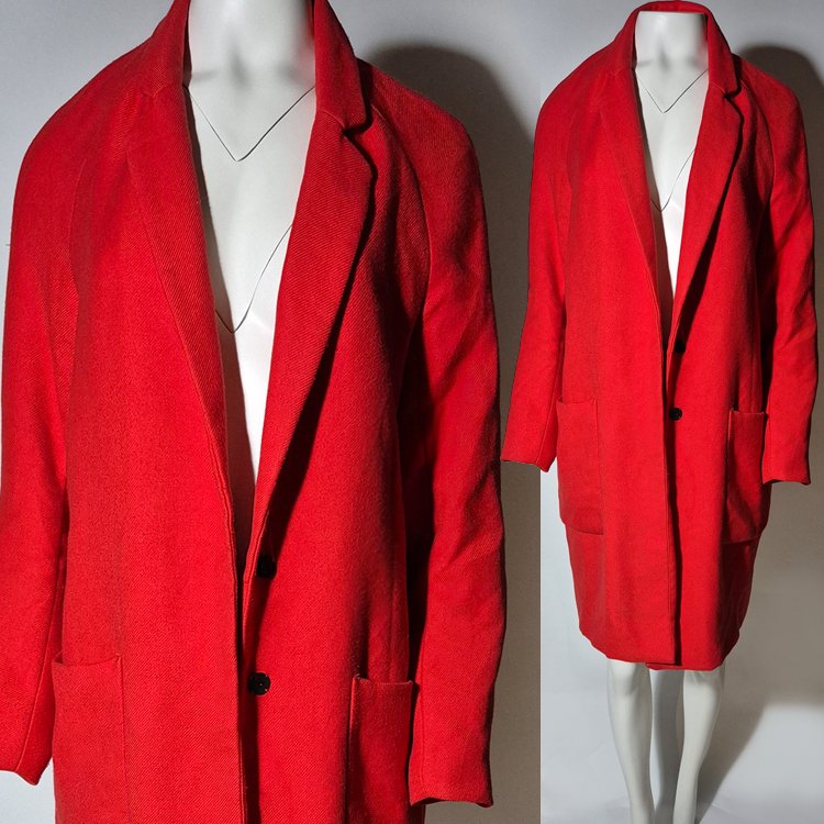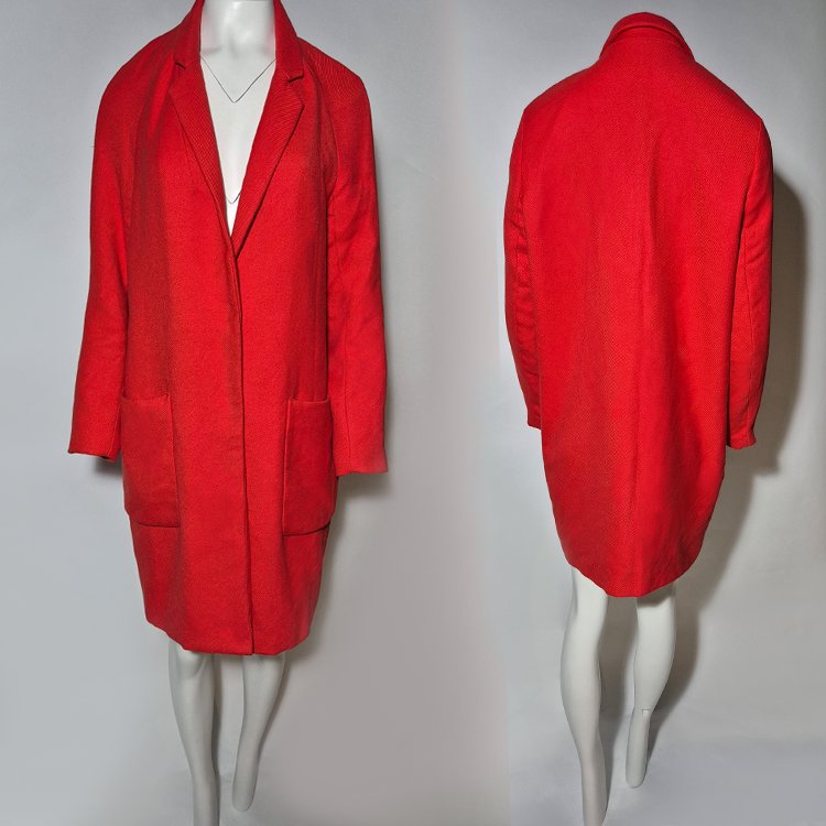 płaszcz damski, płaszcz reserved, czerwony płaszcz, elegancki płaszcz, klasyczny płaszcz, płaszcz 38, płaszcz do kolan, płaszcz jesienny, płaszcz zimowy, płaszcz z podszewką, damski płaszcz czerwony, minimalistyczny płaszcz, płaszcz z kieszeniami, moda damska
