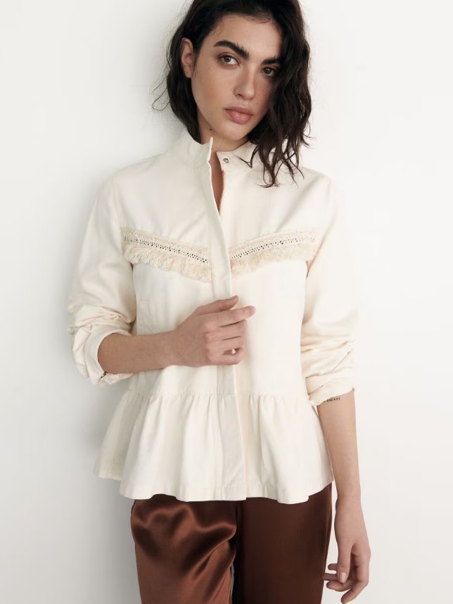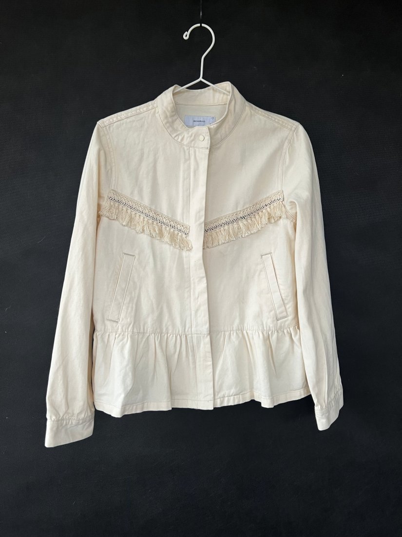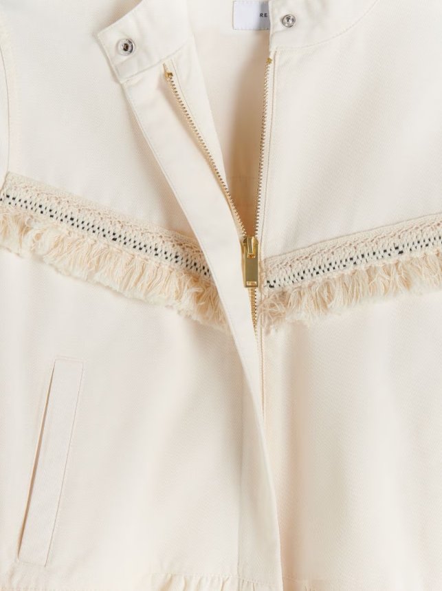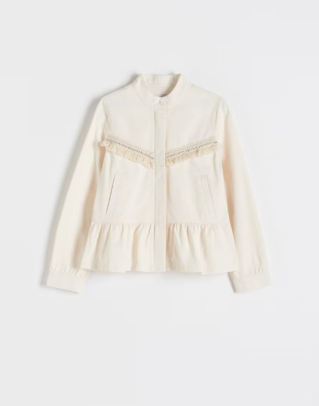 Lekka kurtka z baskinką, w kolorze złamanej bieli, zapinana na zamek. Nowa, z metką.