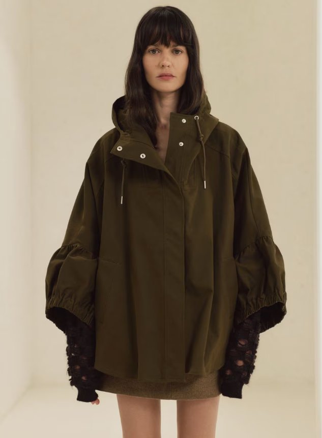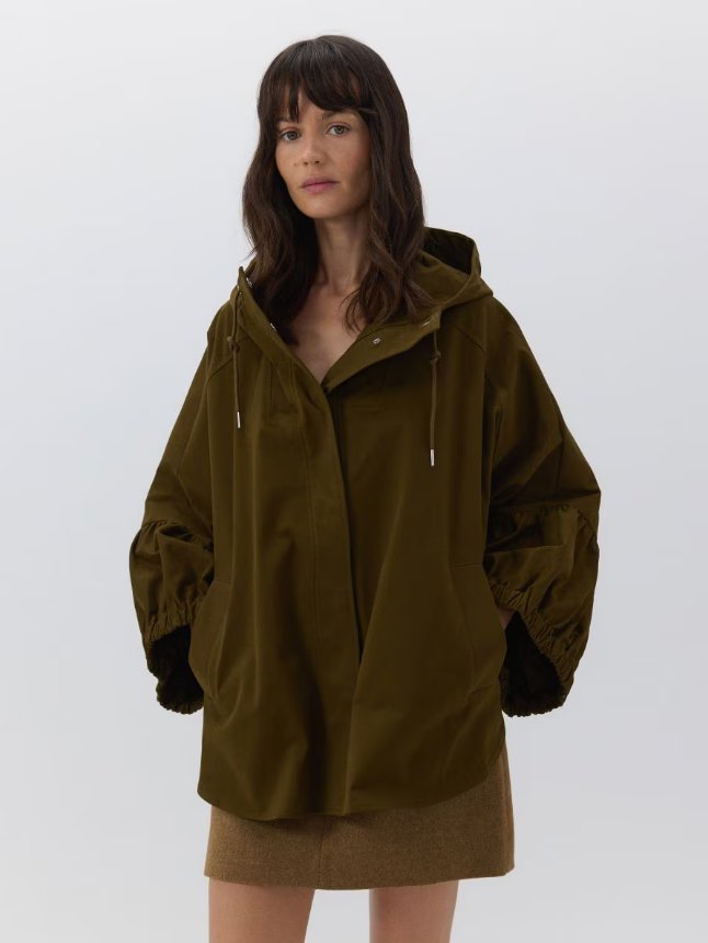 Kurtka o kroju peleryny, wykonana z mięsistej, bawełnianej tkaniny, zapinana na zatrzaski. Stan bdb.