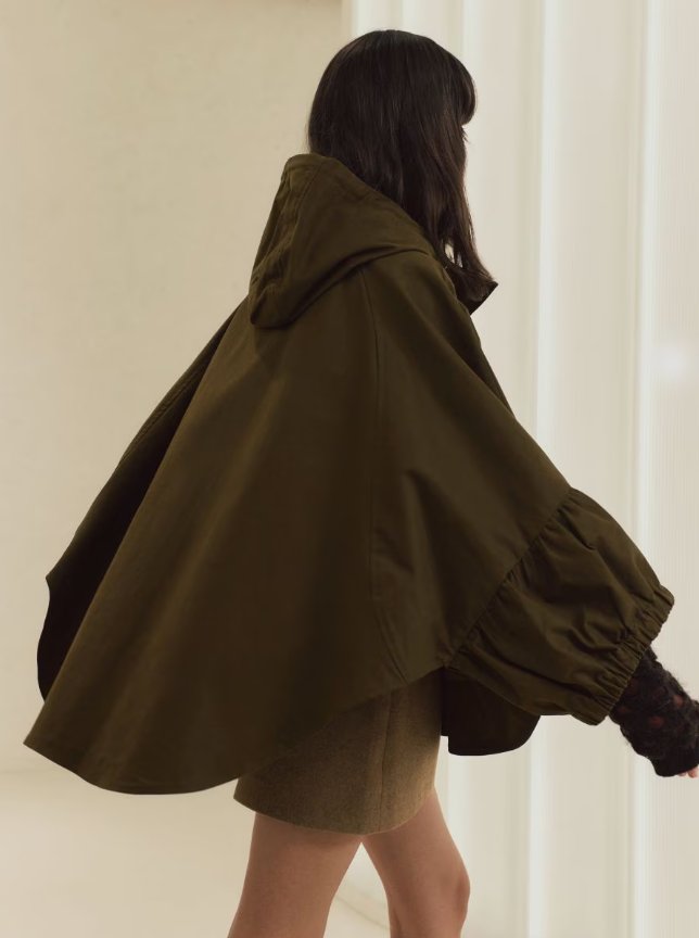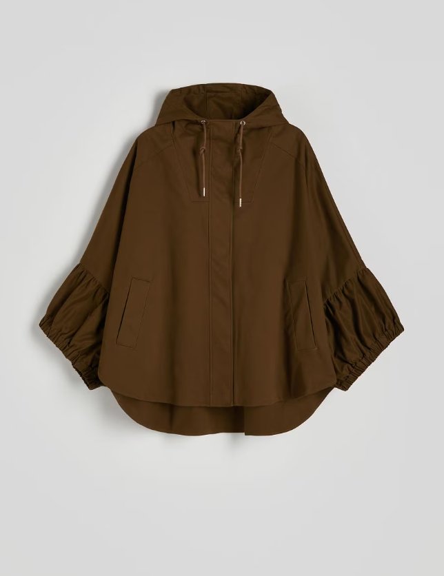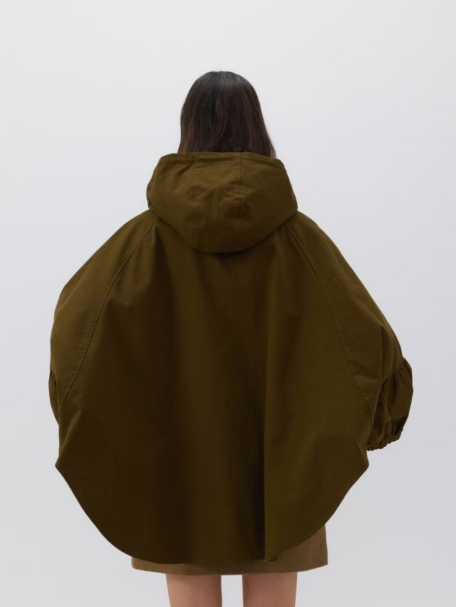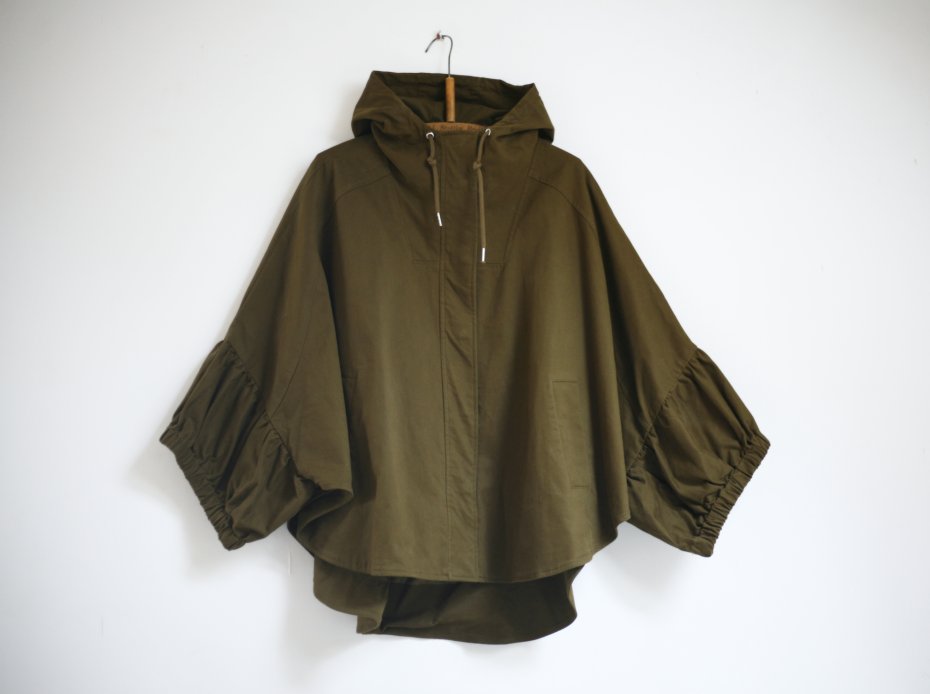 Kurtka o kroju peleryny, wykonana z mięsistej, bawełnianej tkaniny, zapinana na zatrzaski. Stan bdb.