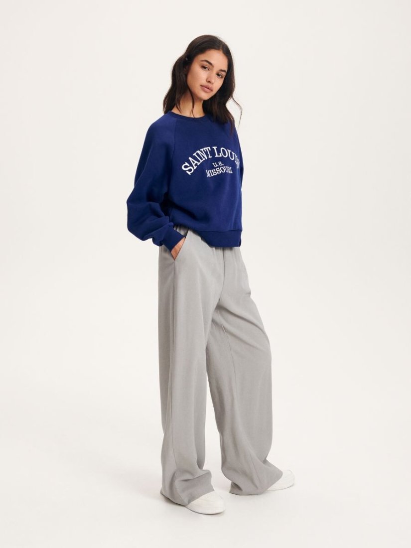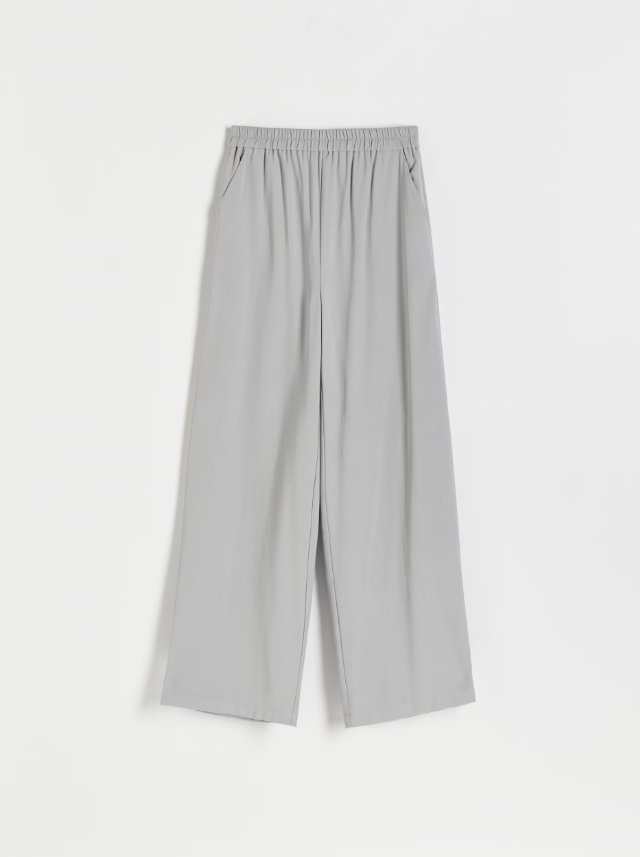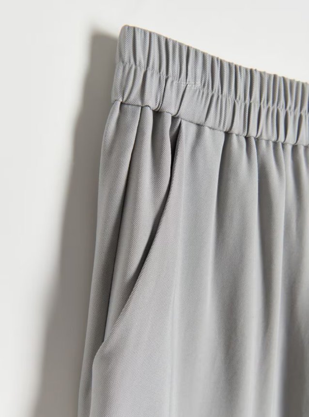 Popielate spodnie o luźnym kroju, w pasie gumka, po bokach kieszenie. Nowe, z metką.