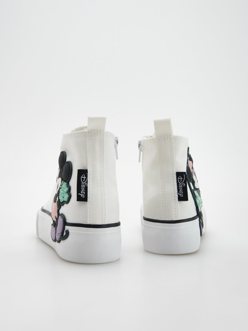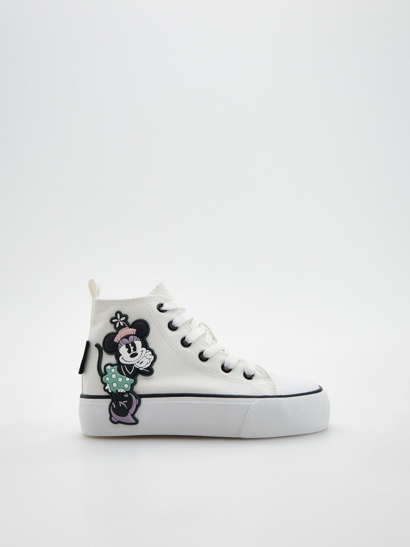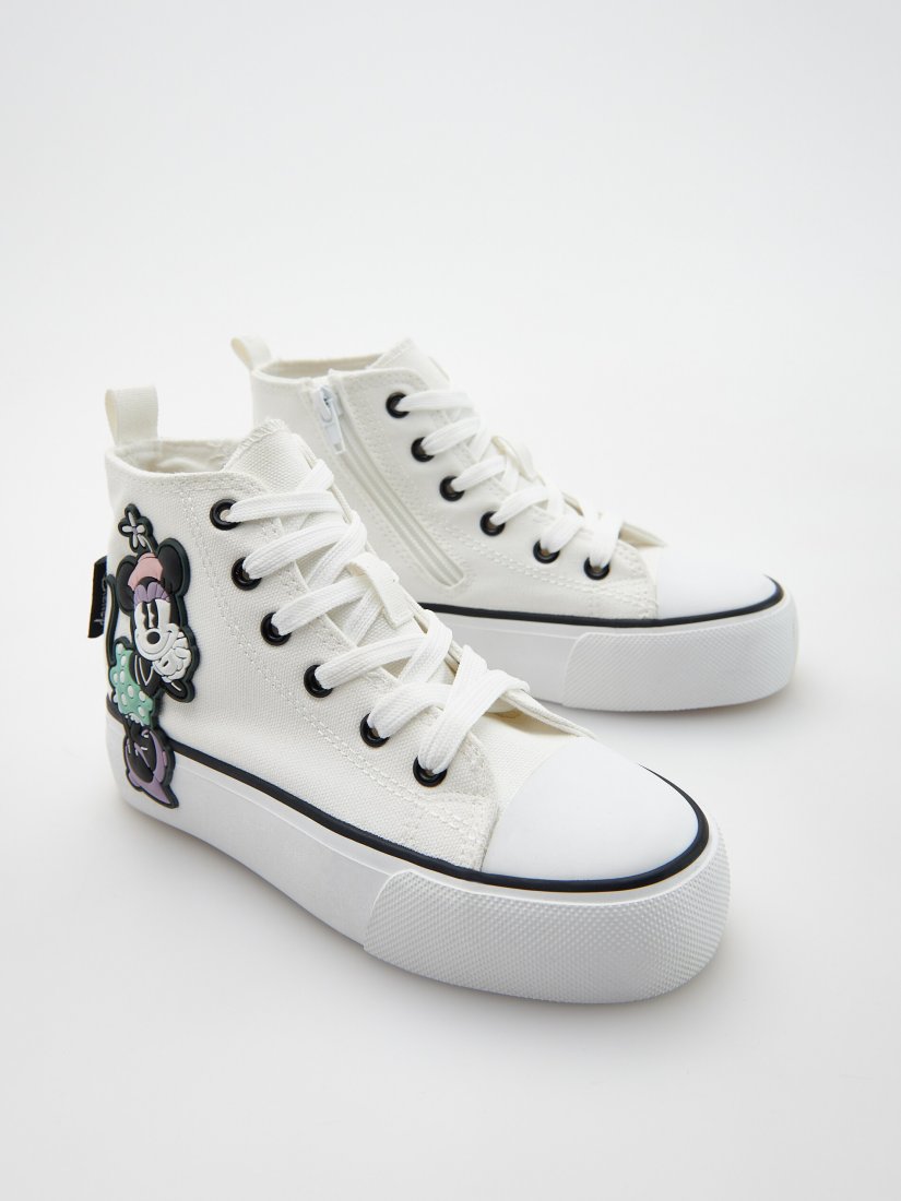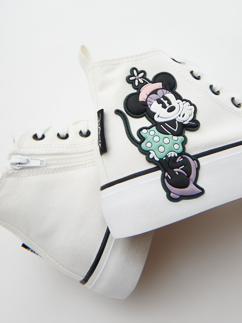 Bawełniane trampki na grubej podeszwie, z motywem Mickey i Minnie, zapinane z boku na zamek. Nowe, z metką.
