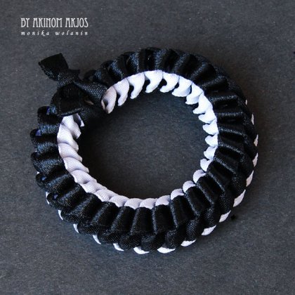 Oryginalna bransoletka wykonana z satynowych tasiemek. Grubość bransolety 1,3cm. Bransoleta jest rozciągliwa, pasuje do każdego nadgarstka. Autorska. Polecam.