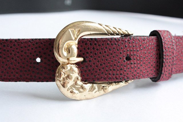 Bordowy pasek z uroczą klamerką wykonany ze skóry ekologicznej.