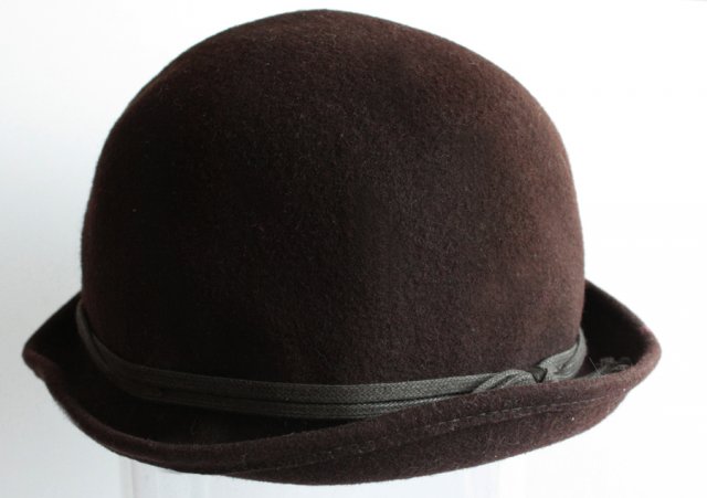 Włoski, wełniany kapelusz z maleńkim rondem.