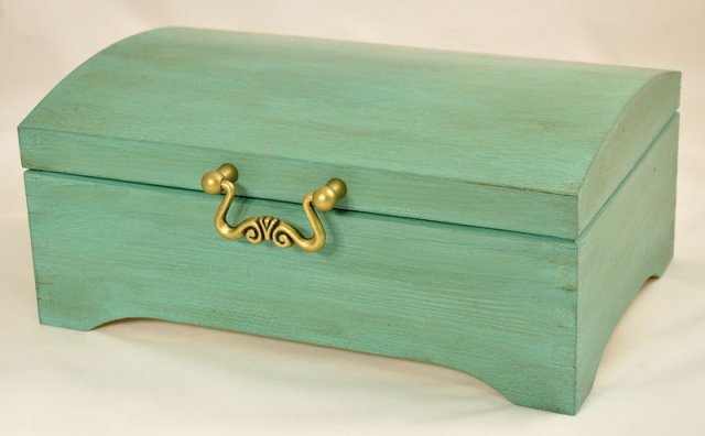 Drewniany kuferek z zaokrąglonym deklem - malowany specjalną techniką - zabezpieczony woskiem.
