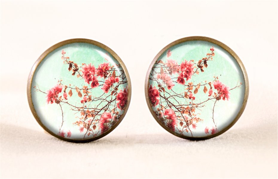 Ręcznie robione kolczyki sztyfty z wysokiej jakości grafiką pokrytą wypukłym, powiększającym szkiełkiem.