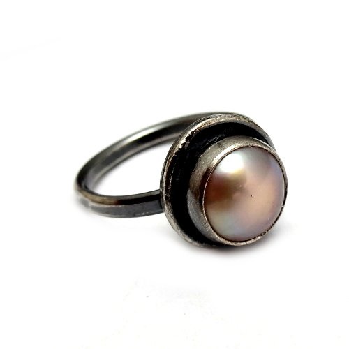 Delikatny i bardzo dziewczęcy pierścień wykonany od podstaw własnoręcznie z zaoksydowanego srebra 925 oraz naturalnej perły hodowlanej o lekkim różowym połysku.Oprawa w prostej cardze stylizuje pierścionek w klimat retro,vintage. Średnica pierścienia 12 mm,rozmiar jubilerski 13.Możliwe powiększenie pierścionka lub wykonanie innego rozmiaru. Pierścień zostanie zapakowany w ozdobne pudełeczko. Na zamówienie wykonamy kolczyki lub wisiorek. .