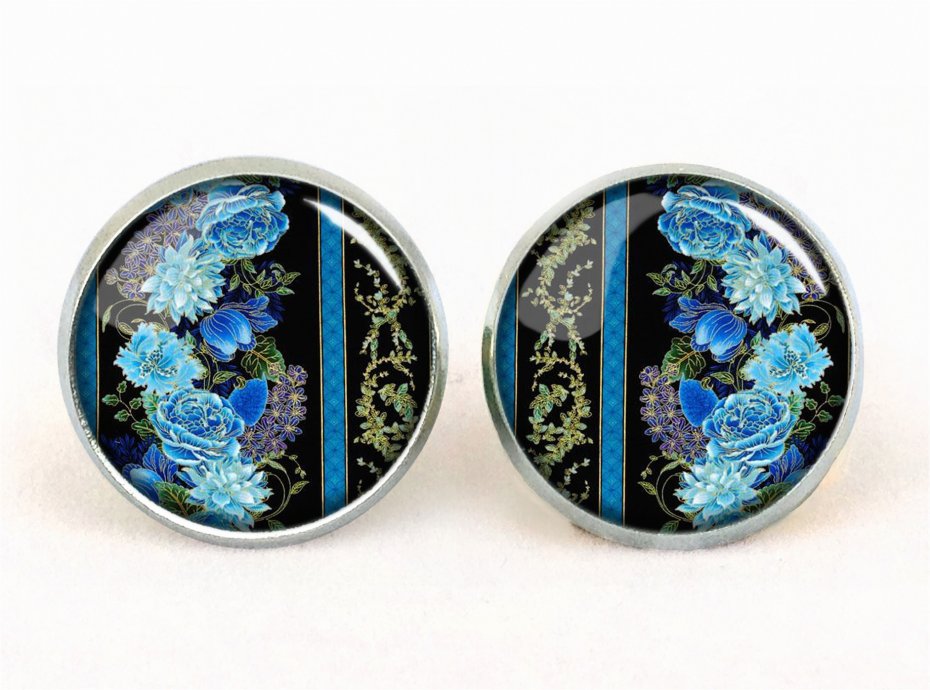 Ręcznie robione kolczyki sztyfty z wysokiej jakości grafiką pokrytą wypukłym, powiększającym szkiełkiem.