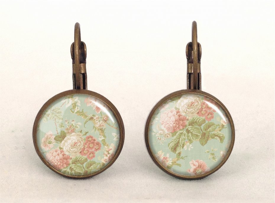 Ręcznie robione kolczyki wiszące z wysokiej jakości grafiką pokrytą wypukłym, powiększającym szkiełkiem.