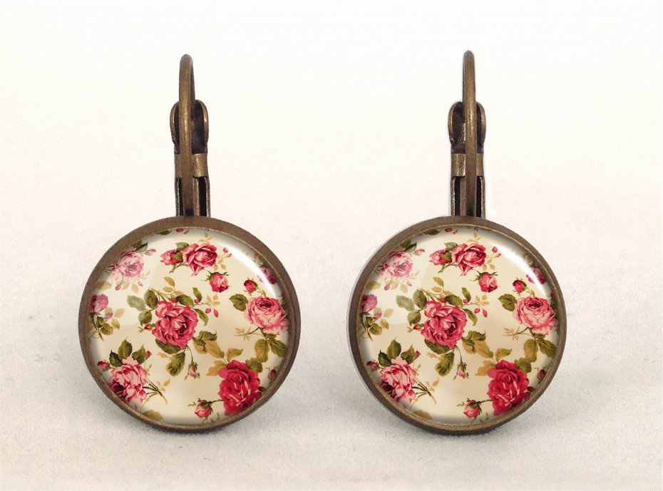 Ręcznie robione kolczyki wiszące z wysokiej jakości grafiką pokrytą wypukłym, powiększającym szkiełkiem.