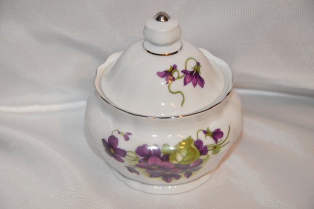FIOŁKOWY DZBANEK , MLECZNIK , CUKIERNICZKA I PODGRZEWACZ