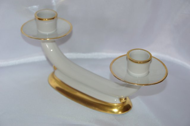 Elegancki świecznik na dwie tradycyjne świeczki , porcelana w kolorze ekri, bogato złocony, sygnowany GEROLD BAVARIA.