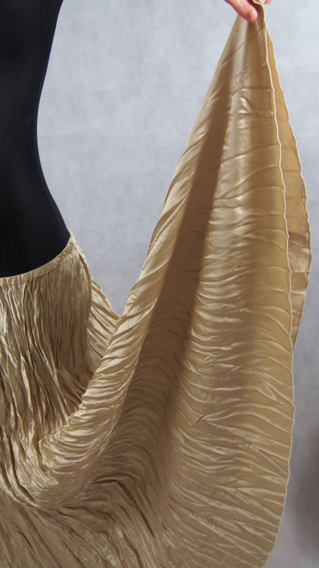 Złota spódnica z koła od amerykańskiego projektanta Ricka Cardona. 55% jedwab, 45% bawełna.