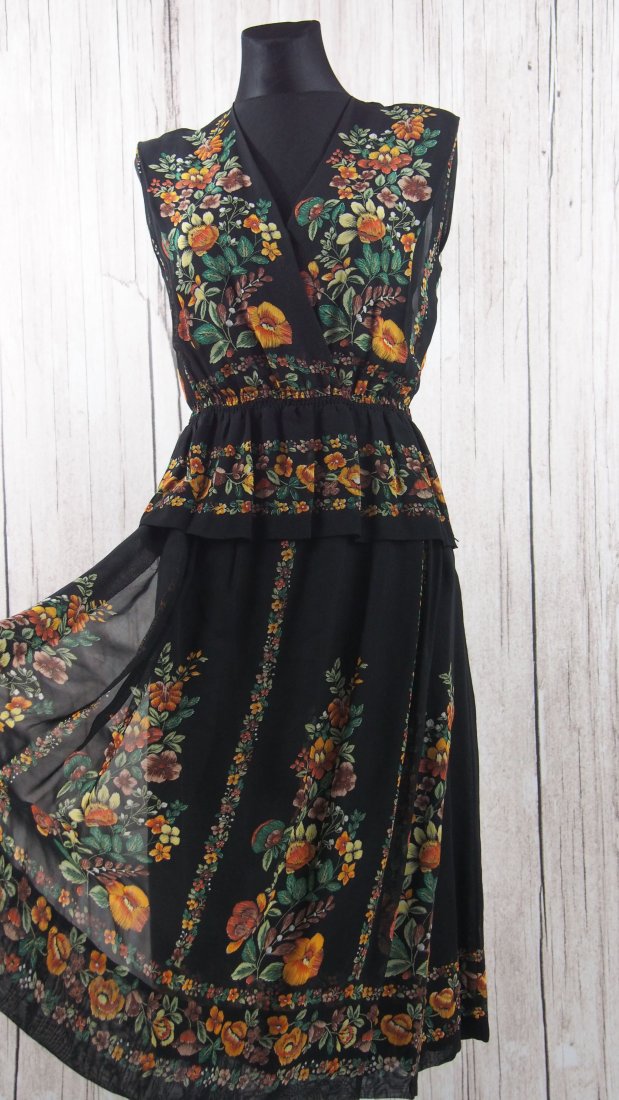 Przepiękna sukienka w idealnym stanie włoskiej projektantki Rinalma Gori. Sukienka z lat 40-50tych. Materiał to moim zdaniem - podszewka poliester, na wierzchu chyba żorżeta. Świetny krój i piękny wzór.