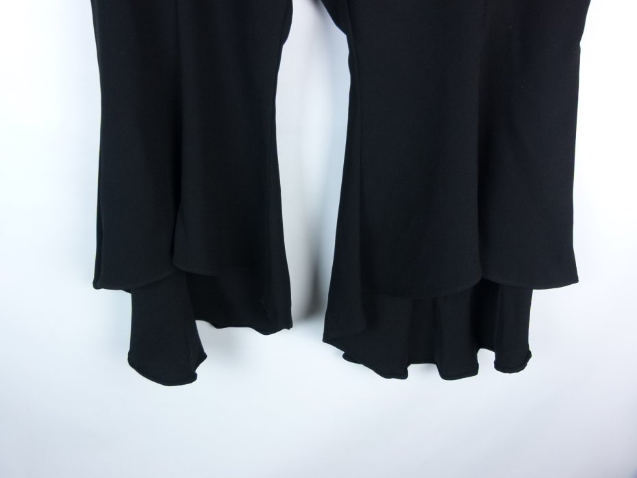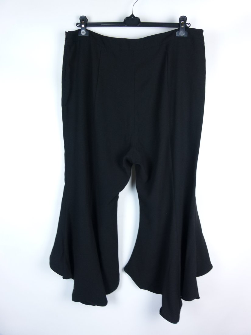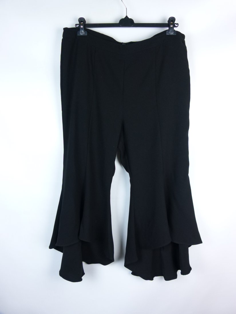 nogawki na dole kloszowane z przodu krótsze , z tyłu długie
