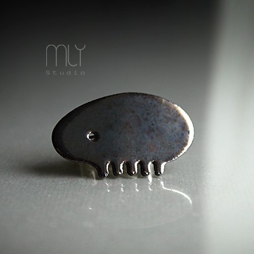 Oryginalna ceramiczna broszka inspirowana motywami biologicznymi, wykonana z delikatnej gliny kamionkowej, szkliwiona błyszczącym stalowo szarym szkliwem, tył i boki czekoladowobrązowe, zapięcie w kolorze srebrnym. Długość ok. 3,7cm. Polecam . Termin realizacji zamówienia to 1-2 dni.