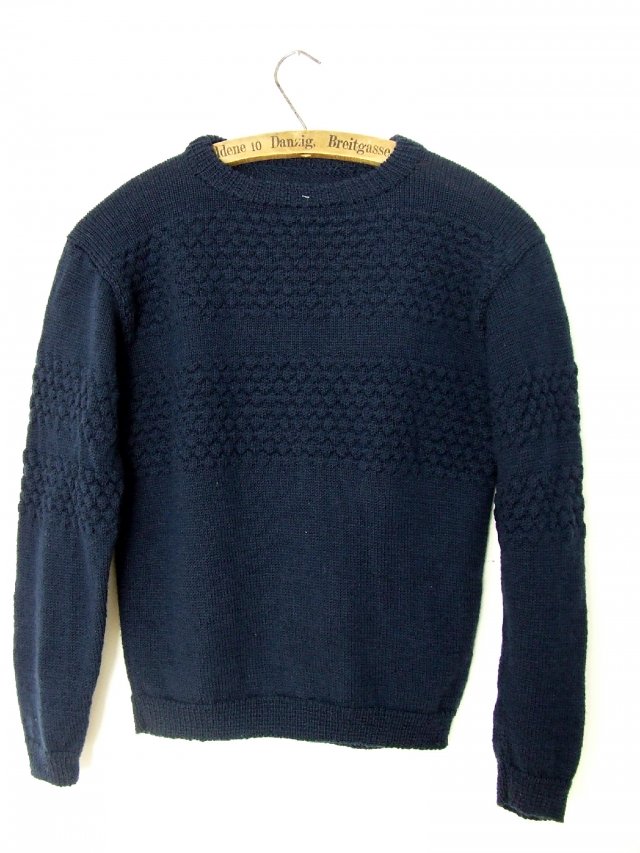 Robiony ręcznie na drutach wełniany sweterek w kolorze granatowym.
