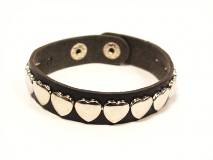 Bransoletka wykonana z materiału skóropodobnego z metalowymi serduszkami. Słodka, a jednocześnie agresywna. Zupełnie nowa!