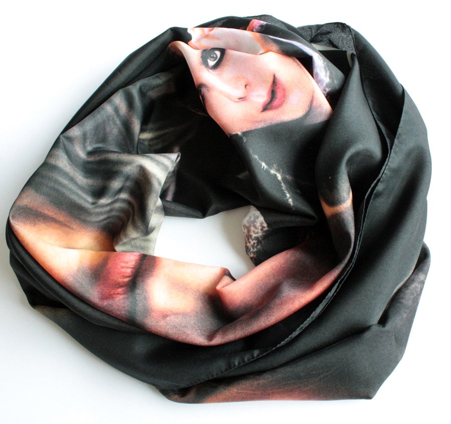 Szeroki szal z nadrukiem zespołu HIM. Można również powiesić go w roli plakatu :)