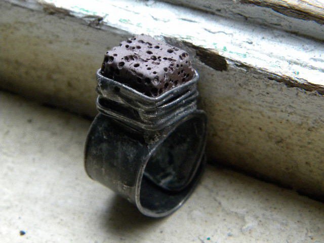 piescionek.miedz,cyna,brązowa lawa.obraczka o szerokosci 1,4cm. rozmiar regulowany,jednak lepiej żeby był ustawiony przeze mnie... Nabywce prosze o podanie rozmiaru - tak jak jest ustawiony na zdjeciach to rozmiar ok 17
