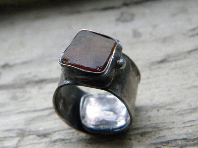 pierscionek.kawałek surowego bursztynu oprawionego w ocynowaną miedz. obraczka o szerokosci 1,4cm. rozmiar regulowany,jednak lepiej żeby był ustawiony przeze mnie... Nabywce prosze o podanie rozmiaru - tak jak jest ustawiony na zdjeciach to rozmiar ok 15-16