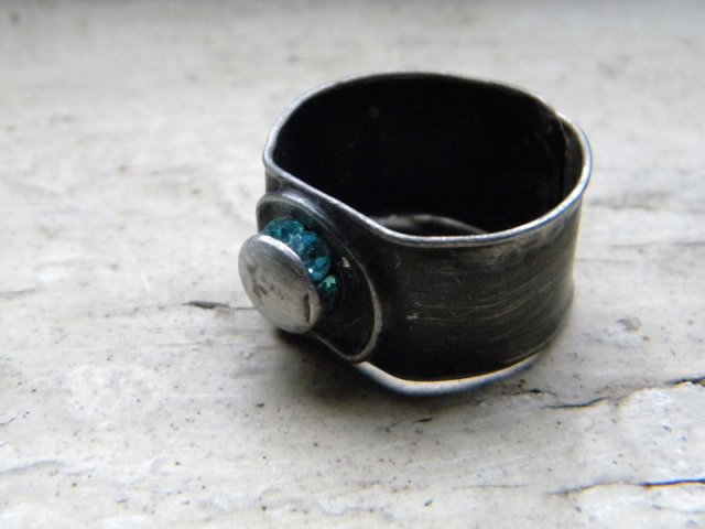 piescionek.miedz,cyna,kryształy swaronski..obraczka o szerokosci 1,3cm. rozmiar regulowany,jednak lepiej żeby był ustawiony przeze mnie... Nabywce prosze o podanie rozmiaru - tak jak jest ustawiony na zdjeciach to rozmiar ok 17