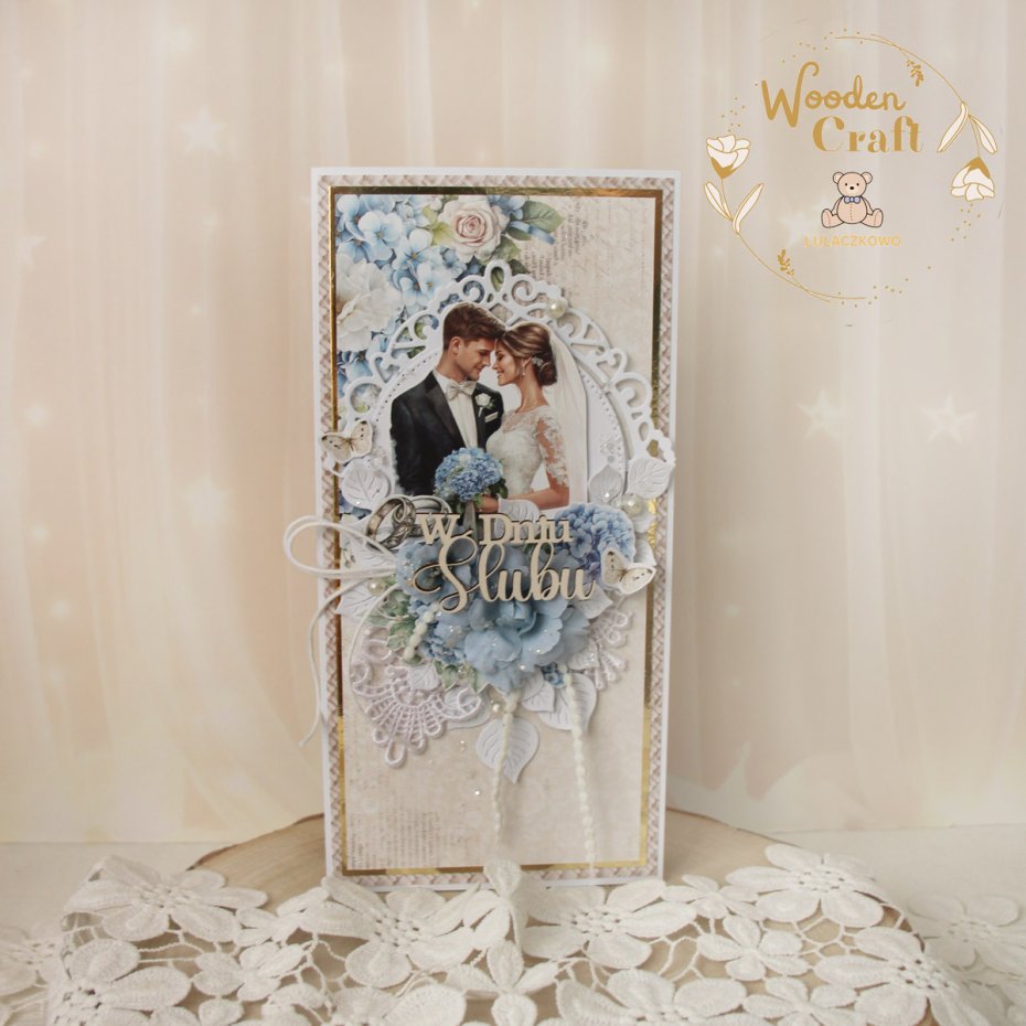 Kartka będzie pięknym i niepowtarzalnym dodatkiem do prezentu dla Państwa Młodych.