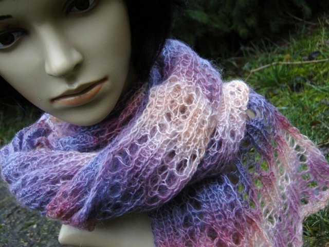 Mięciutki, delikatny , ręcznie wykonany szal przepięknym wzorem ażurowym, może służyć cały rok. Użyta włóczka- to moher, akryl w odcieniach jasnego różu i lila. Wymiary szer. ok.41 cm, dług. ok. 186cm Zalecane pranie ręczne w temp. 30 stopni, suszenie na płasko po nadaniu odp. kształtu. Polecam serdecznie. .