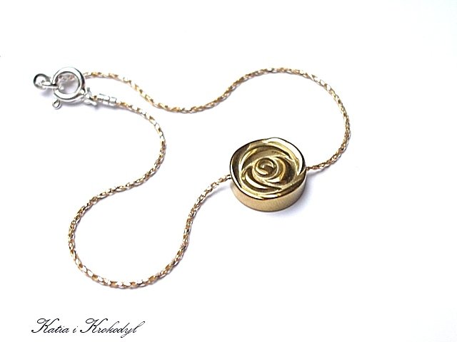 Delikatna bransoletka wykonana w całości ze srebra i srebra pokrytego 24k złotem [pr. 925] w połączeniu z hematytową różą w kolorze złotym [12mm] . Całkowita długość bransoletki 19cm Biżuteria ozdobnie zapakowana.