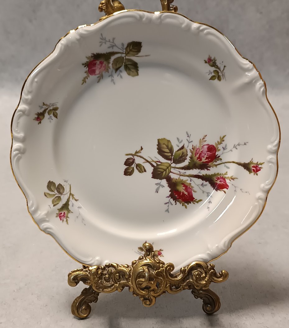 Porcelana w kolorze delikatnej kości słoniowej (écru) stanowi idealne, ciepłe tło dla motywu kwiatowego "Moss Rose" (róży omszonej).