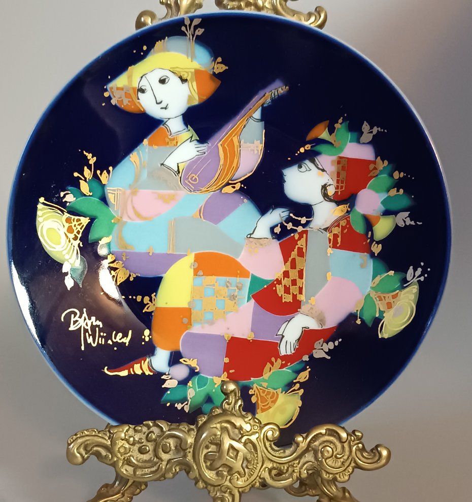 Autentyczność projektu potwierdza złoty podpis Bjørna Wiinblada umieszczony bezpośrednio na malaturze, co jest rzadkością i podnosi rangę kolekcjonerską zestawu.