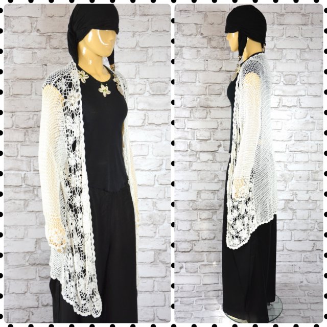Elegancka dłuższa biała narzutka marki Roseandgold o delikatnie asymetrycznym kroju, przód nieznacznie dłuższy od tylu. Narzutka o otwartym kroju z boku w ażurowe wzory kwiatów, wykonana z lejącej tkaniny - w moim przekonaniu viscozy.