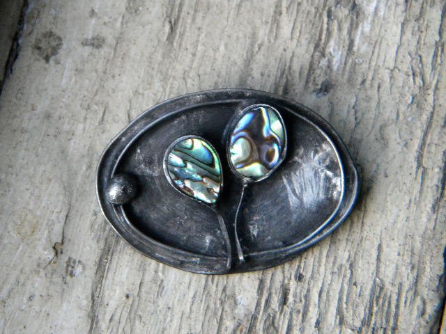broszka. muszla paua w ocynowanej miedzi.cyna bezołowiowa,ekologoczna. wymiary 5,1cm x 3,6cm. stylizowana na stare srebro.