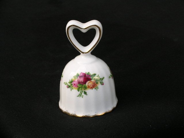 Czystą porcelaną dźwięczący, romantycznie kwiatowy i bardzo angielski niewielki dzwoneczek - bukietowa przyjemność na podorędziu w domu, dźwiękiem do stołu zapraszający :) Jakościowe wykonanie, falbanowe ryflowanie i złocenia. Serce dzwonka łańcuszkowe. 5 x 7,5 cm. Sygnowany. Stan zachowania bardzo dobry.