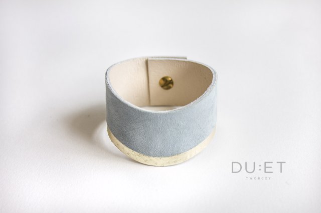 Elegancka i subtelna bransoleta wykonana ręcznie ze skór naturalnych w kolorach: jasny złoty, błękitny/gołębi (zamsz), delikatny beż (mięciutki zamsz).
