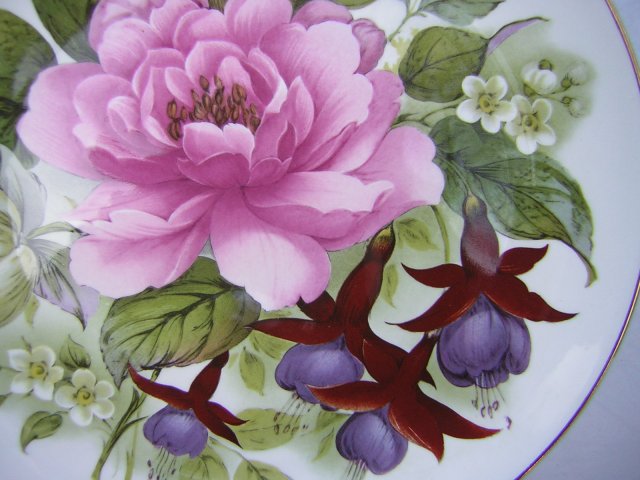 Porcelanowy talerz o średnicy 20 cm . Sygnowany ROYAL BURLINGTON COLLECTION STAFFORDSHIRE BONE CHINA MADE IN ENGLAND. Porcelana mocna, dźwięczna, szlachetna. Zdobienie kolorowe, kwiatowe, radosne. Aż świecą ; ) Wykończenie błyszczące, rant złocony. W pełni użytkowy, wiekce dekoracyjny . Dodaję profesjonalny uchwyt do powieszenia, jeśli chęć dekorację nascienną zeń uczynić. Piękna ozdoba stołu, domu, super rzecz na ciekawy prezent.