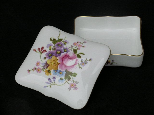 Wielce szlachetne porcelanowe puzdro - podwójnie sygnowane jakością Royal Crown Derby - z wartościowej kolekcjonerskiej serii Derby Posies z klasycznie romantycznym zdobieniem kwiatowym. Bardzo kobiece :) Jakość wykonania, miękka biel porcelany, złocenia i jedwabiście błyszczące szkliwienie. 11,5 x 10 x 4 cm. Stan zachowania bardzo, bardzo dobry. Prawdziwa klasa. Wartość kolekcjonerska.