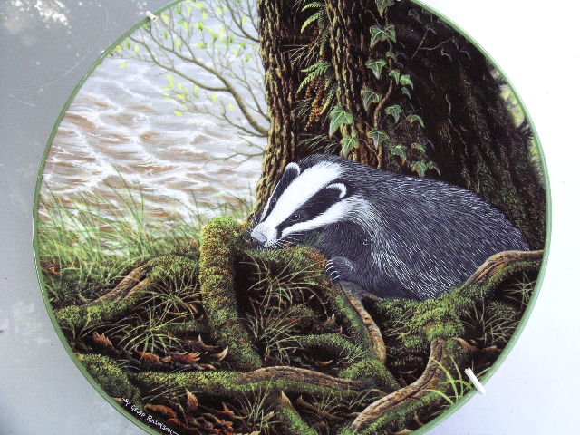 Jakościowy Porcelanowy Talerz Kolekcjonerski. Sygnowany ROYAL DOULTON Bone China Made in England The Badger on his Evening Prowl by W.Geoff Rollinson .Czwarty z serii Rollinsons Portraits od Nature. Pierwsza limitowana ,ekskluzywna edycja - wykonywana tylko przez 150 dni. w 1988 roku. Talerz posiada swój indywidualny numer na międzynarodowej liście Talerzy kolekcjonerskich BRADEX 26-R62-25.4,oraz swój numer w serii. 3784A. Odręczny podpis autora.na awersie i rewersie.