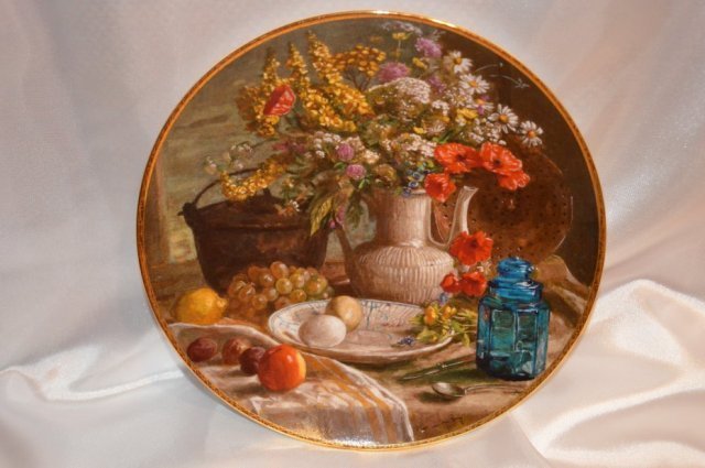 Przepięknie ubarwiony porcelanowy talerz, sygnowany ROYAL MOSA - BRADEX.