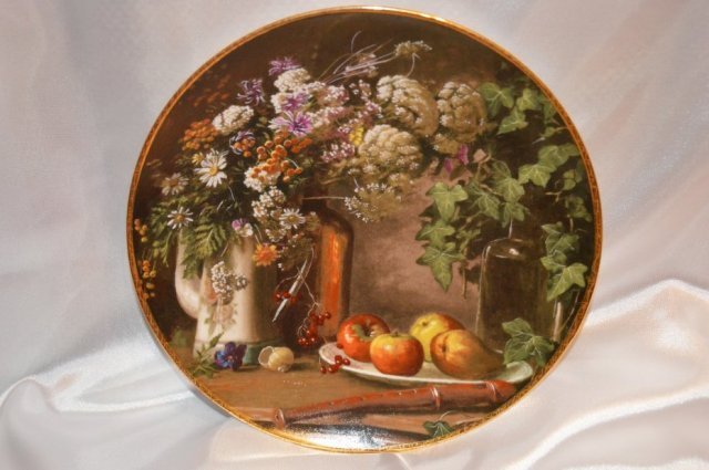 Przepięknie ubarwiony porcelanowy talerz, sygnowany ROYAL MOSA - BRADEX.