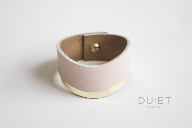 Elegancka i subtelna bransoleta wykonana ręcznie ze skór naturalnych w kolorach: jasny złoty, pudrowy róż (skóra licowa), neutralny brąz (mięciutka).