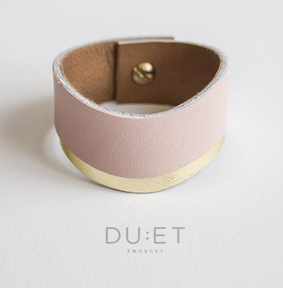 Elegancka i subtelna bransoleta wykonana ręcznie ze skór naturalnych w kolorach: jasny złoty, pudrowy róż (skóra licowa), jasny brąz (wewnątrz).